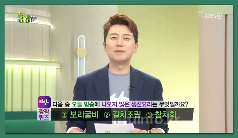 생생정보 깜짝 퀴즈는 프로그램이 시작될 때 나오는데요. 생생정보 방송을 처음부터 시청하신다면 쉽게 맞힐 수 있는 문제입니다.